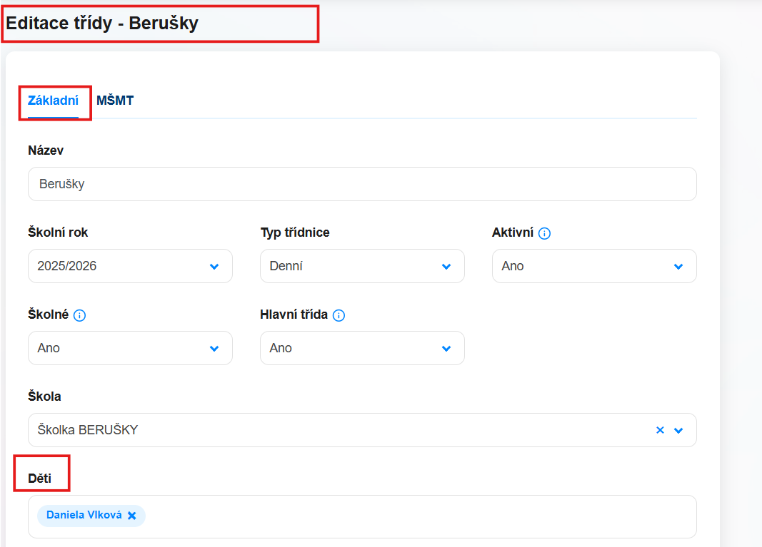 V záložce Základní, v kolonce Děti, přidáme konkrétní dítě vzdělávané formou IVP.