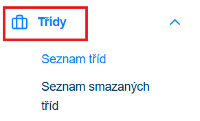 V hlavním menu na levé straně obrazovky vybereme záložku Třídy a poté Seznam tříd.